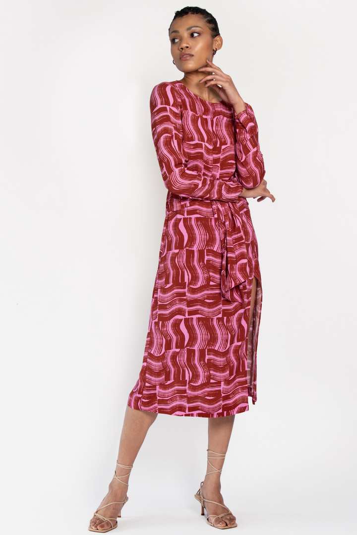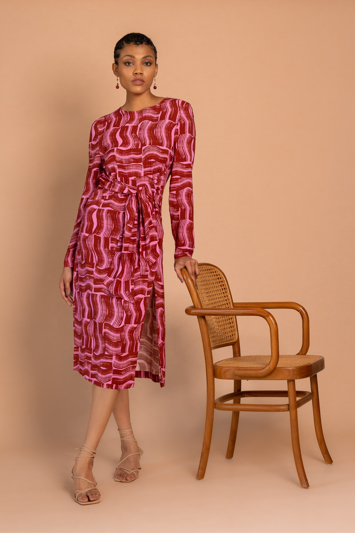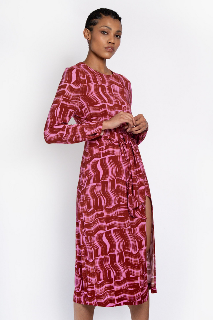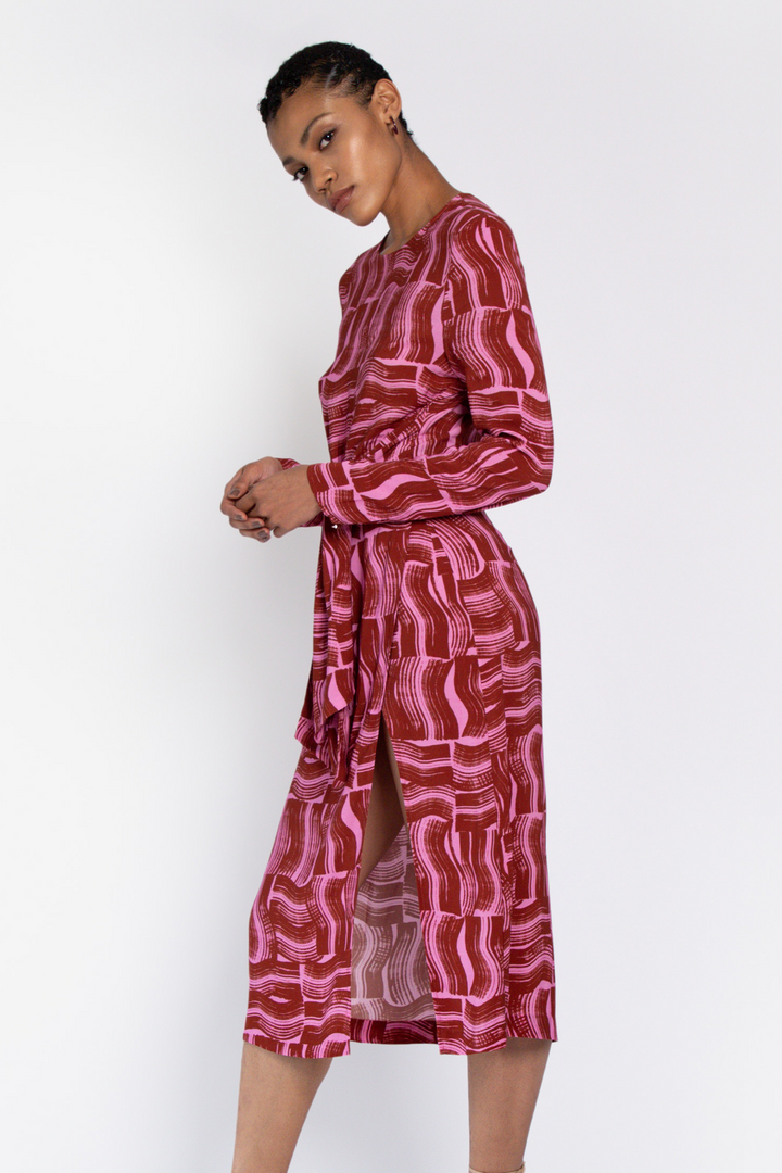 Meet the Verbena, a dress that has a sophisticated and sexy side. Featuring a creative paintbrush print with an understated front split, this dress will take you from desk to dinner in a jiffy.
