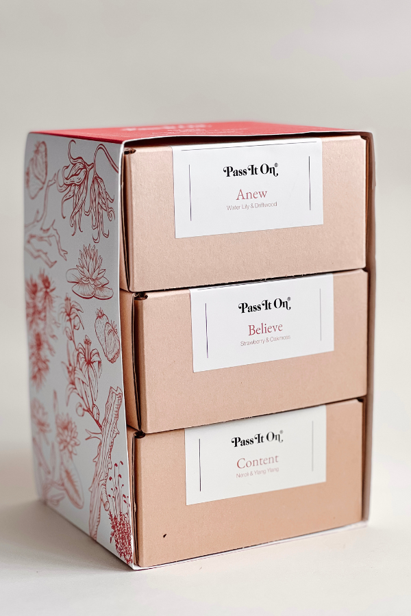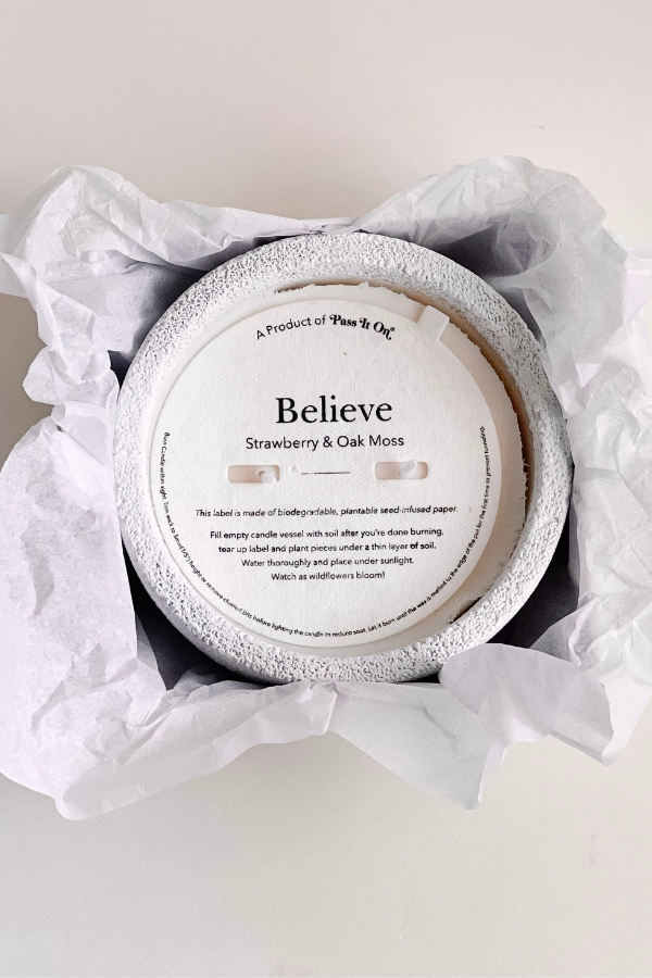 Pass it On candles are made from 100% soy wax and are free from synthetic dyes, parabens, paraffin and phthalates. Each scent pays tribute to iconic travel destinations that are endangered due to climate change. What's more, after your candles has finished you can reuse the holder to grow a plant with their biodegradable, wildflower seed infused paper.