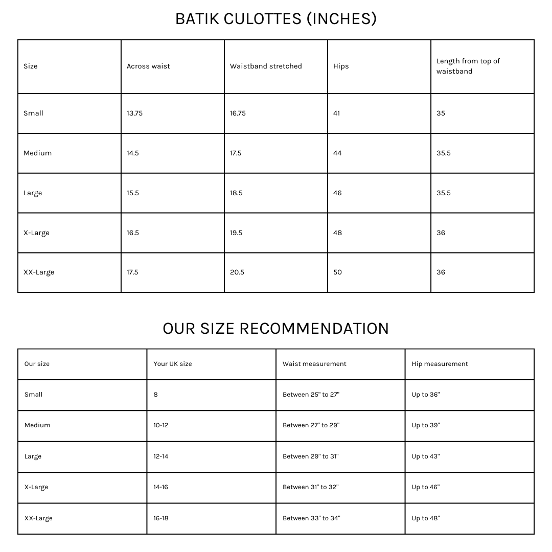 Designed for comfort, our signature Batik Culottes Pants In Tumbuh Indigo have a wide legged hem and elasticized back waistband. Putting these on is made easy with the side zip, and subtle pleats help to define the shape on your body. High-waisted, true to size.
