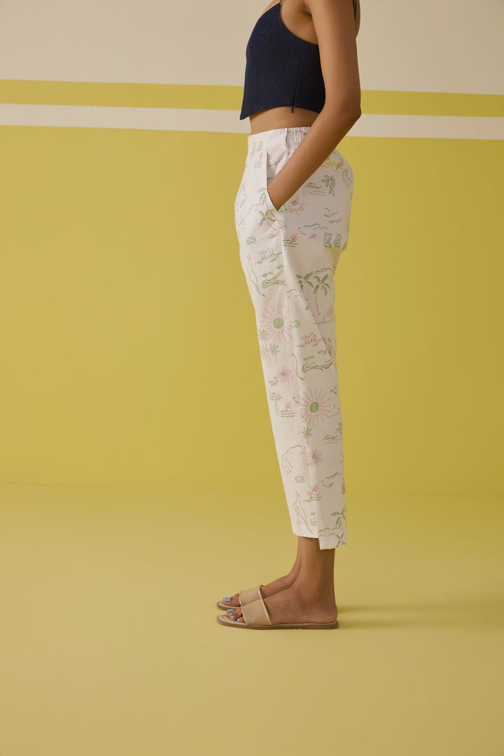 These tailored, straight-leg trousers are made from eco-friendly organic cotton poplin and feature a hand block printed design in Sui's signature summer-inspired motif. Versatile and timeless, these trousers can easily be paired with a variety of tops such as shirts, crop tops, and kurtas for any occasion.