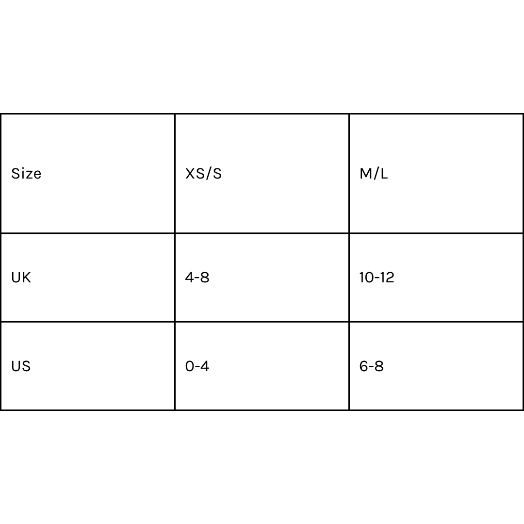 The studio model is wearing size XS/S. If you're in-between sizes we recommend going one size down.
