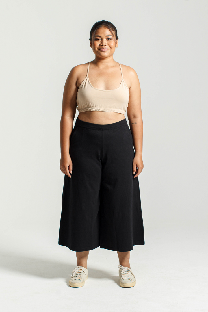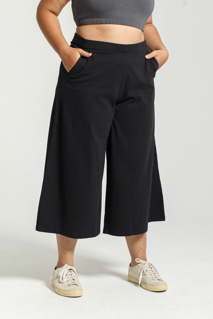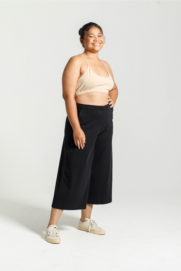 Back by popular demand, our Culottes have a classic silhouette that perfectly compliments all heights. Their flat front and diagonal pockets give the waist a tailored look while the fabric's drape creates movement through the legs. We recommend styling them with a smart top for office days or tuck in a tee for effortless casual. Also available in Navy.