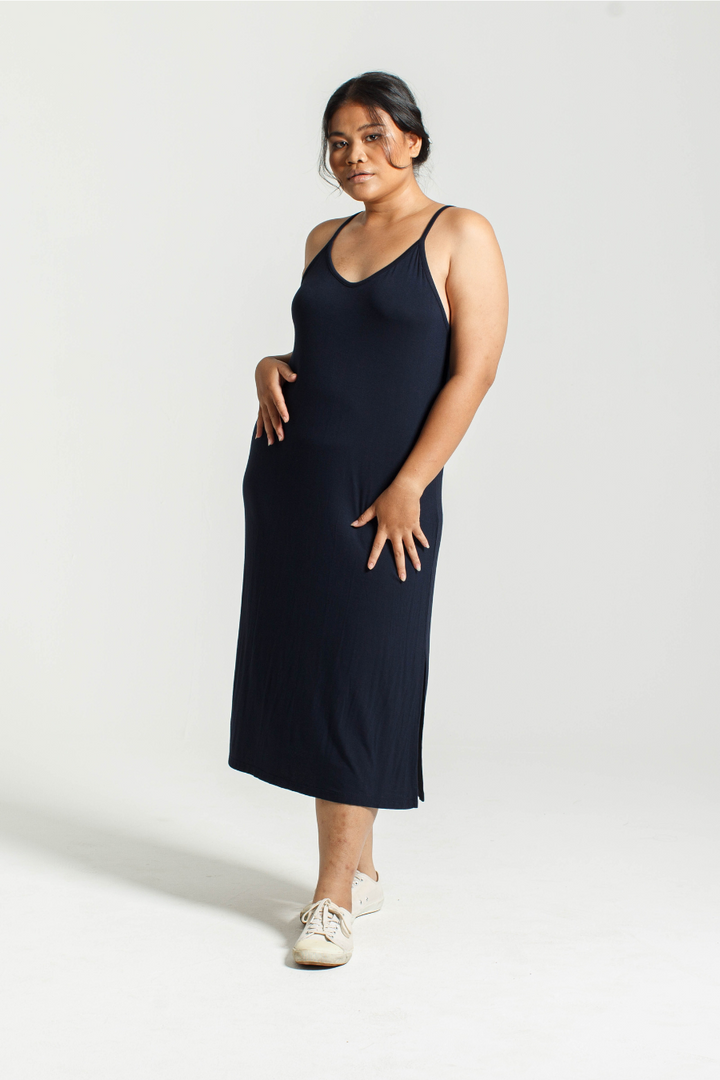 With a subtle side slit, V-Neck front and lowered back, this effortless Singlet Dress will add elegance to your casual wardrobe. Made from a soft and stretchy cotton jersey to create a fit that hangs off the body, it's easy to wear from day to night. This style has a relaxed fit and hangs slightly off the body.