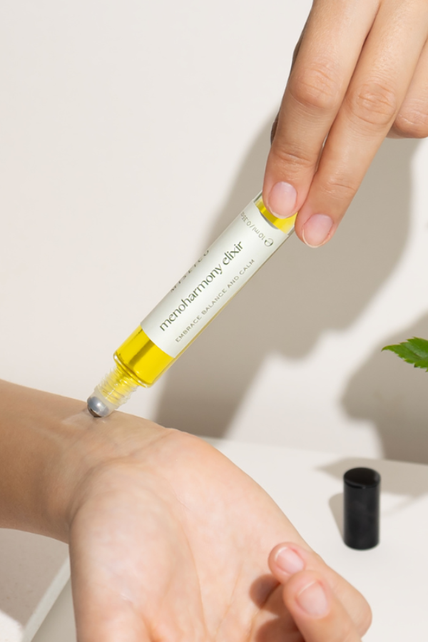 MenoHarmony Elixir is 100% natural and formulated without parabens, phthalates, synthetic fragrances, PEGs, and SLSs.