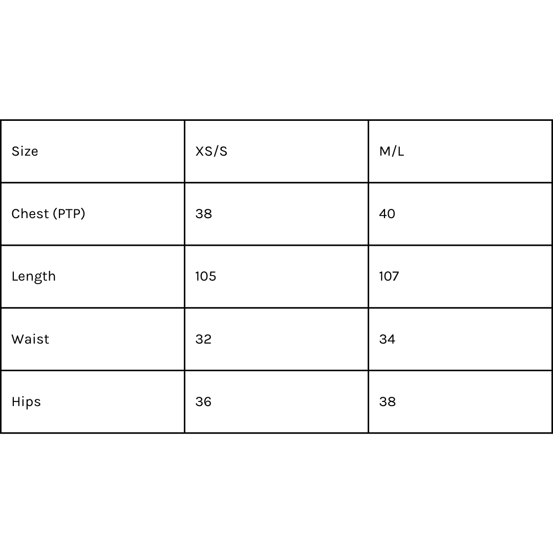 The first model is wearing size XS/S, the studio model is wearing size XS/S. If you are in-between sizes we recommend going one size down.
