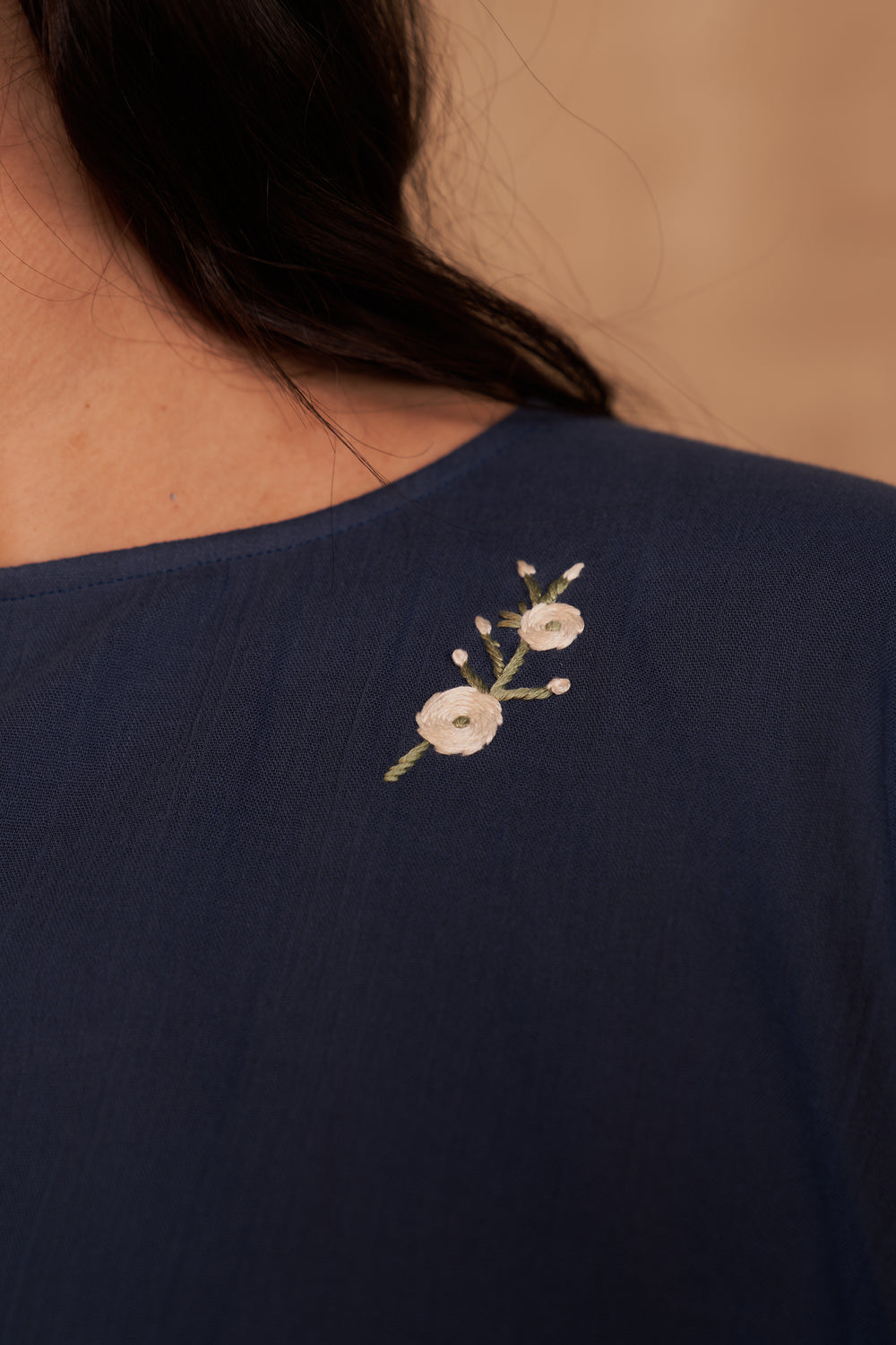 Crafted from azo-free dyed, organic cotton double gauze, this relaxed fit top features short sleeves with ties and charming wildflower and 'self love club' embroidery. Enjoy creating unique outfits with the versatile piece - wear it often to bring a fresh look to your wardrobe.