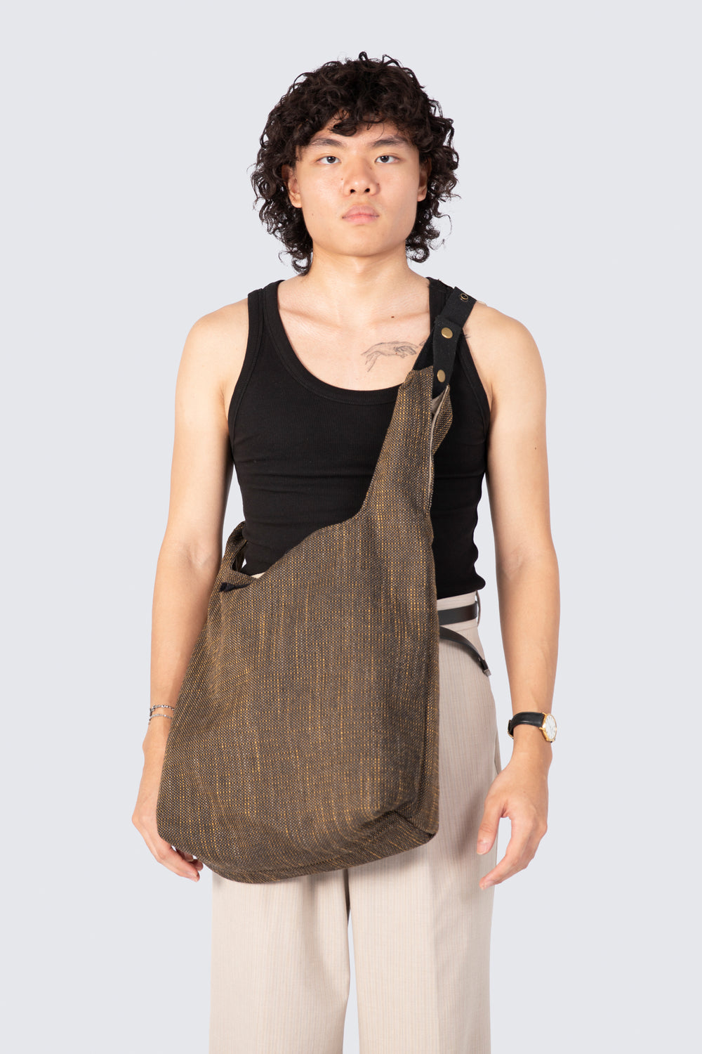 Switch up your style effortlessly with the Maxi Reversible Knot Bag in Brown & Beige, designed with both brown and light beige fabric sides for maximum versatility. Its adjustable strap offers three ways to wear: on your shoulder, across your body, or handheld with the strap removed. Made from upcycled materials and crafted ethically in Singapore, this bag is a sustainable, stylish addition to any wardrobe.